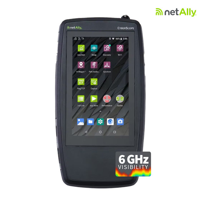 - Wired and wireless troubleshooting of 2.4, 5, and 6 GHz bands including WiFi surveying.